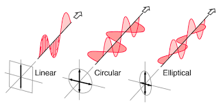 Când un fascicul de lumină este polarizat circular, fiecare foton al său poartă un moment unghiular de rotire sua spin (SAM) care este pozitiv pentru stânga și negativ pentru polarizări circulare drepte (aceasta adoptă convenția din punctul de vedere al receptorului cel mai des utilizat în optică). Acest SAM este direcționat de-a lungul axei fasciculului (paralel dacă este pozitiv, antiparalel dacă este negativ). Figura de mai sus arată structura instantanee a câmpului electric din stânga ( L) și dreapta (R) lumină polarizată circular în spațiu. Săgețile verzi indică direcția de propagare.